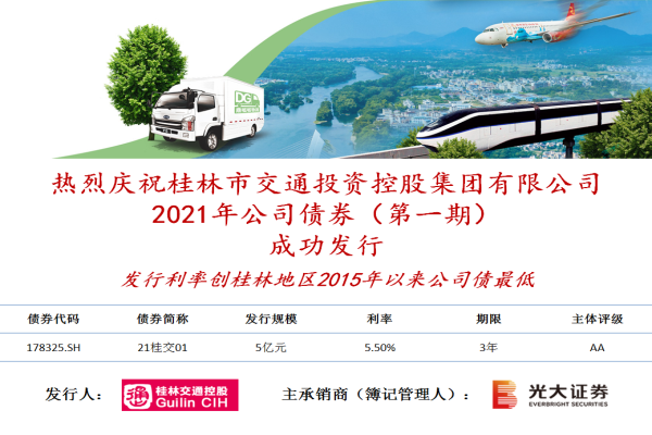 2021年4月9日,,,桂林交通控股集团乐成刊行2021年第一期5亿元公司债券,,,刊行利率创桂林地区2015年以来公司债最低。。。。。