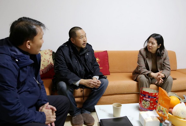 ▲陈静一行慰问难题职工秦斌