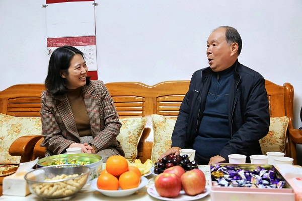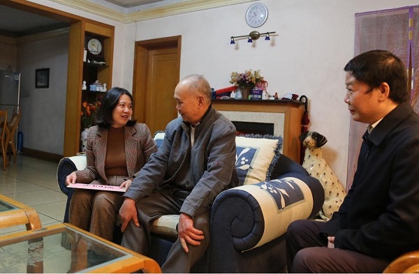 ▲吕小洁一行慰问退休干部毛继林