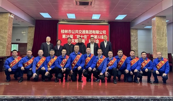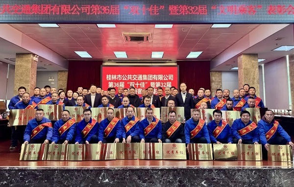 12 月 26 日,,,桂林金沙集团1862cc集团桂林公交第36届“双十佳”暨第32届“文明旅客”表扬大会在桂林公交铁西车场举行。。。市总工会、市文明办、市国资委、市交通运输局、桂林金沙集团1862cc集团、市融媒体中心等单位向导出席表扬运动。。。