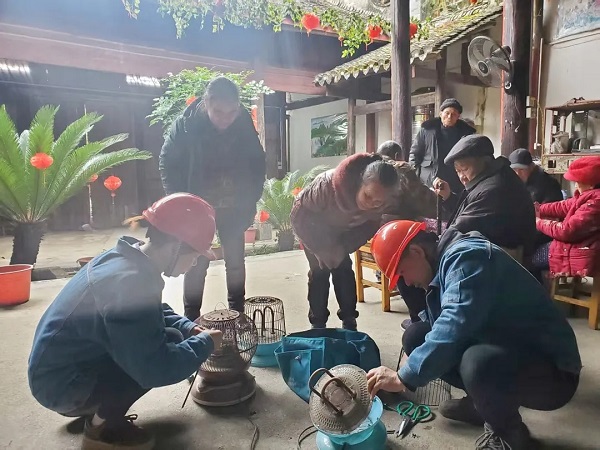 群众有需求,,企业有响应。。青狮潭公司“水电卫士先锋队”迅速在前宅村晚年运动中心设立暂时效劳点,,把便民效劳送抵家门口。。磨练间隙,,队员们化身“清静宣讲员”,,用方言和通俗话语,,向老人们普及冬季用电知识。。“取暖和器要远离可燃物”“坏插座别自行维修”,,知心提醒让老人们轻松掌握清静技巧,,增强提防意识。。