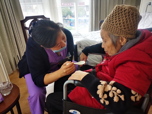 “从事养老照顾护士光当好保姆还不敷,,,还要当好‘子女’,,,给老人子女般的爱,,,才华让老人把公寓当立室。。。。。”蒋丽芳这样说同样也是这样做的。。。。。一次,,,公寓里一位年过八十的老人因病情加重,,,只能躺在床上静养,,,身体与心灵的双重折磨使得老人心理肩负过重,,,最先拒绝用饭,,,时常单独流泪,,,得知这一情形后,,,蒋丽芳经常抽闲到老人的房间探望他,,,给他喂饭,,,陪他谈天,,,勉励老人与病魔作斗争,,,争取早日康复。。。。。在蒋丽芳的起劲下,,,老人最先自动用饭,,,并配合治疗……